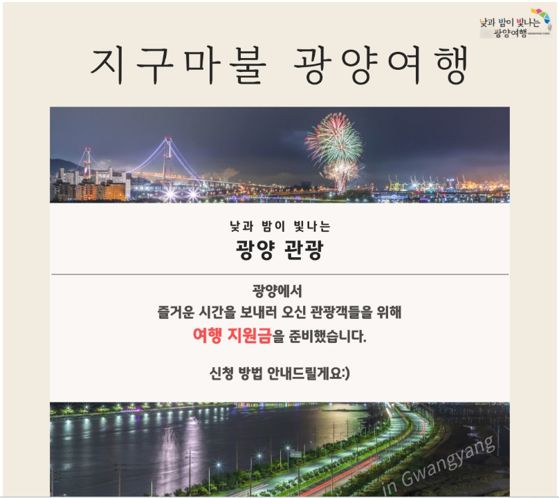 - SNS 인증: 전체공개 + #광양여행 #관광지명 해시태그 필수