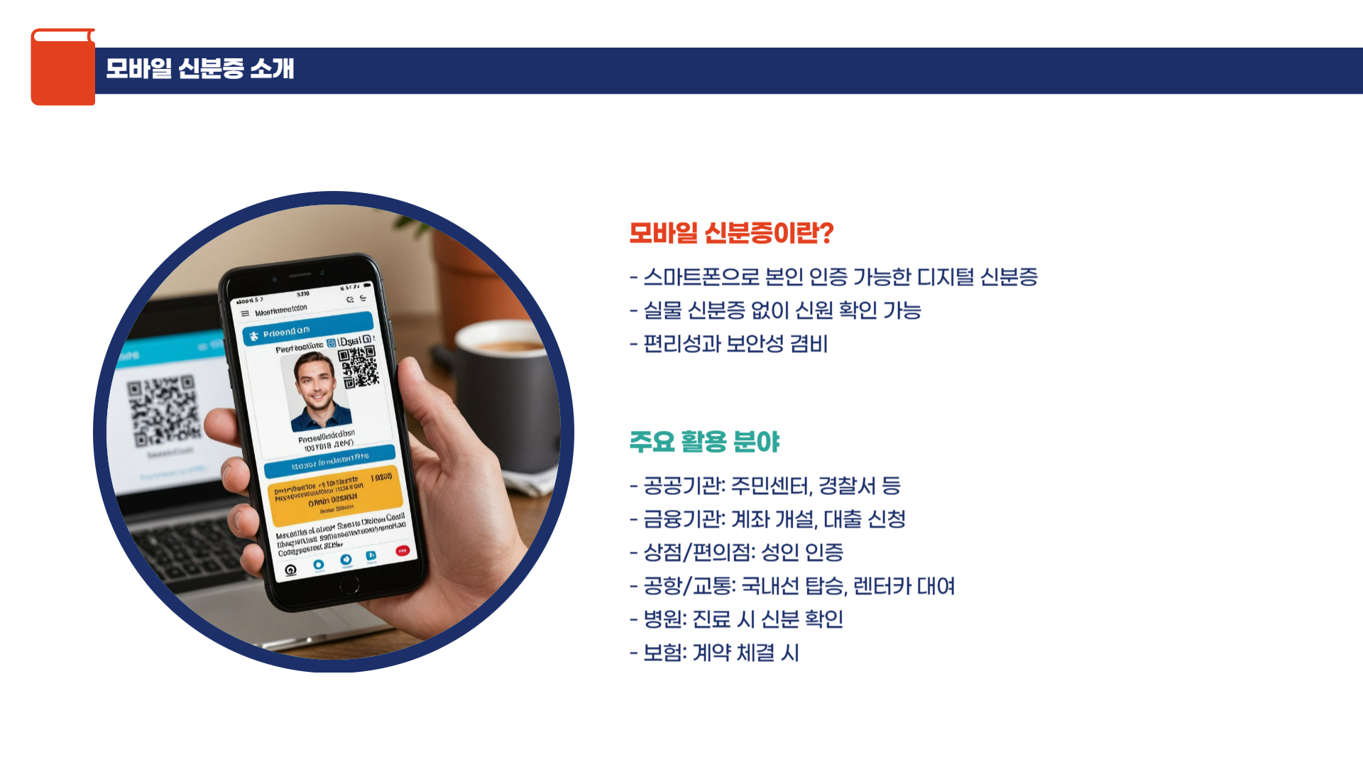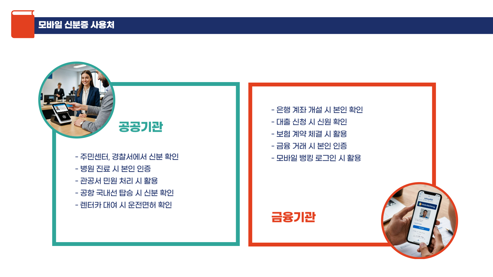 | 공공기관 | 주민센터, 경찰서, 병원 진료 시 신분 인증 |
