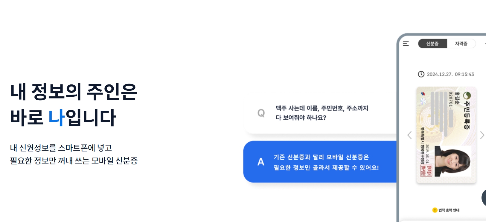 모바일 신분증은 실물 주민등록증이나 운전면허증 없이 스마트폰으로 본인을 인증할 수 있는 디지털 신분증입니다.