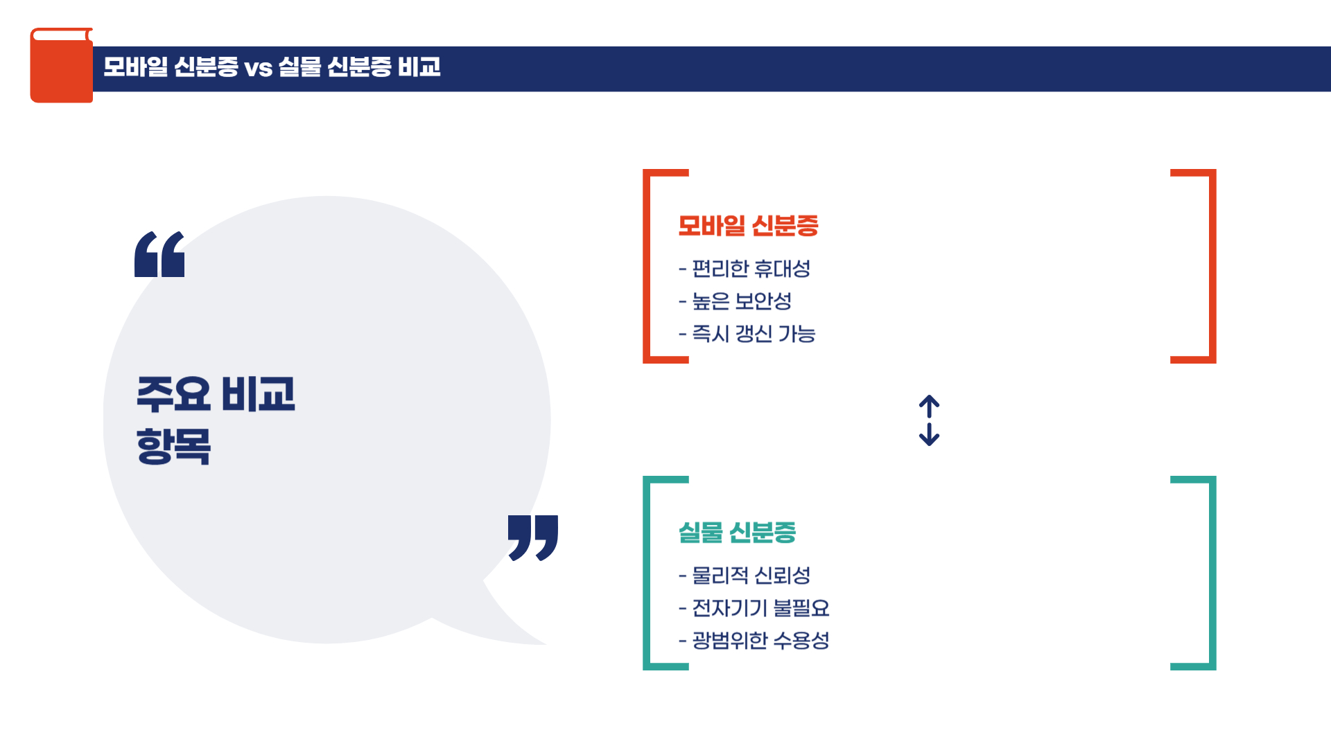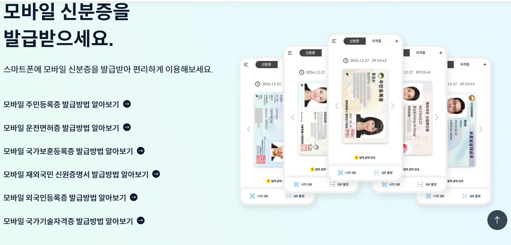 - 일부 민원 또는 출국 등 상황에 따라 실물 신분증 지참 필요