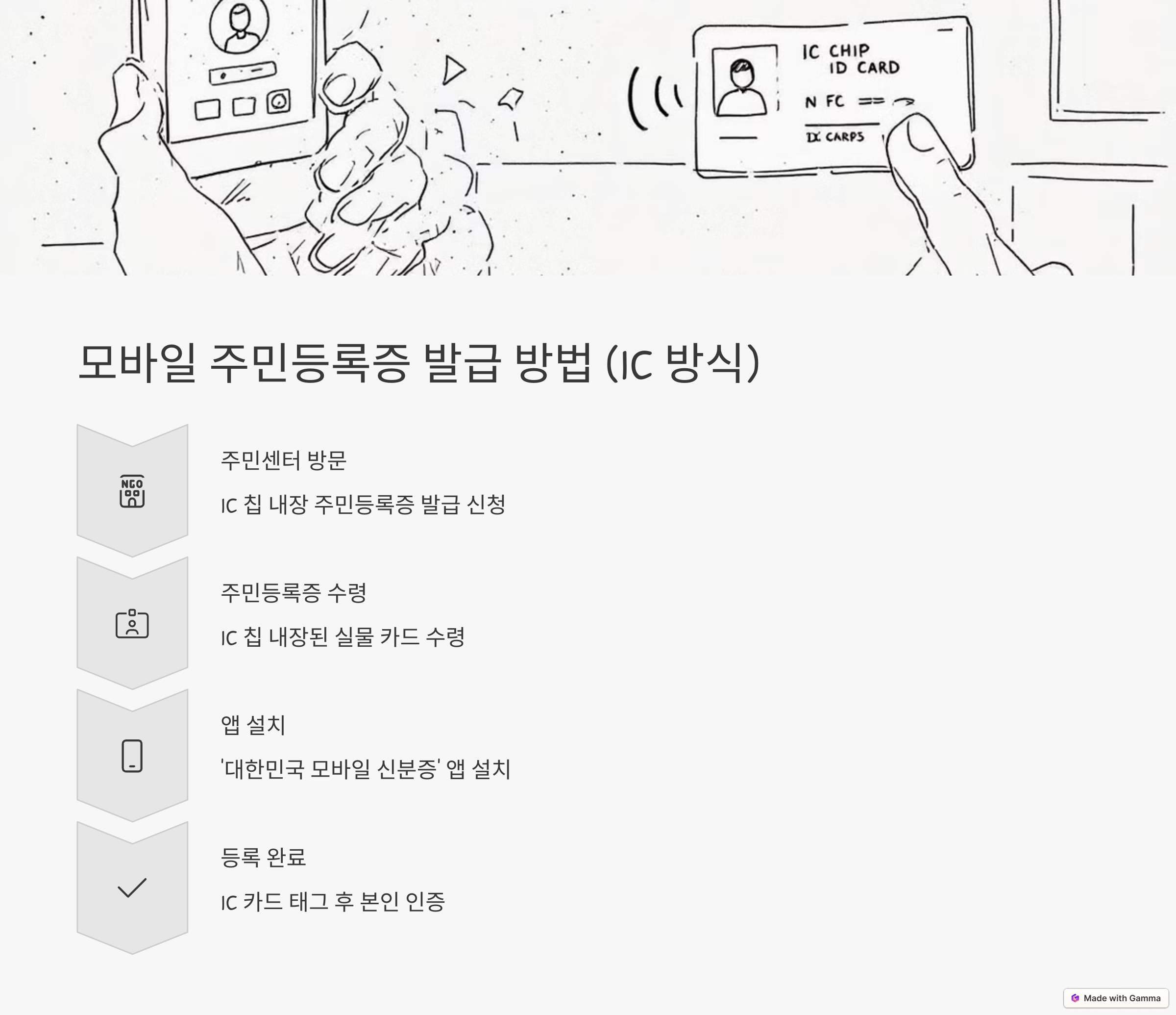 IC 칩이 내장된 주민등록증을 발급받아 스마트폰과 연동하는 방식입니다.