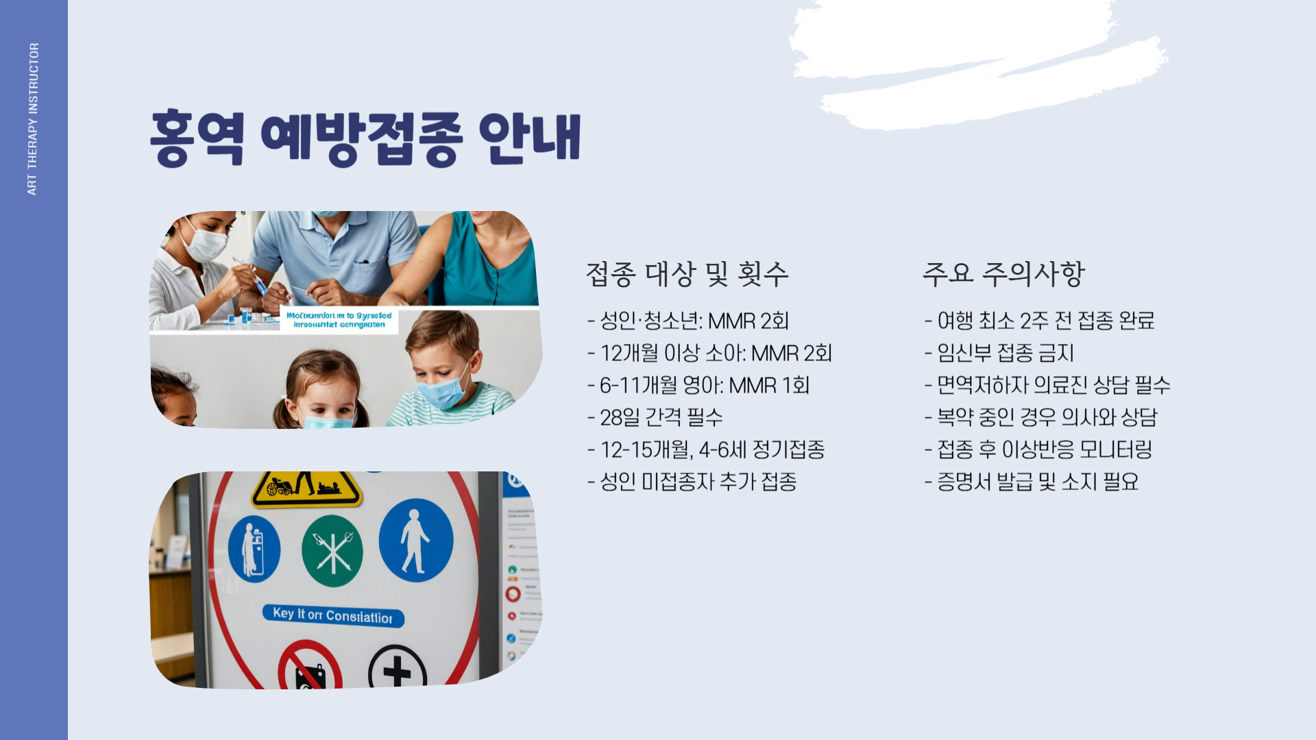 - 출국 최소 2주 전 MMR 백신 2회 접종 완료 권장