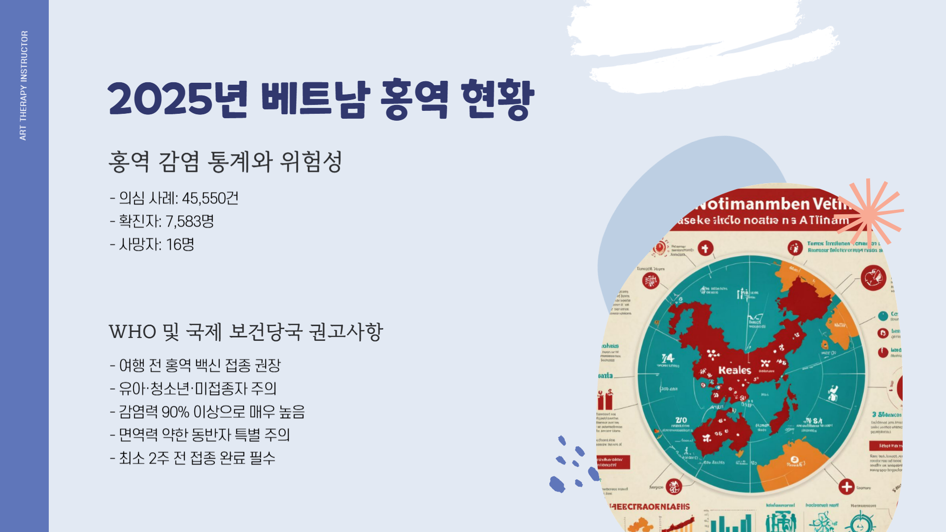 - 📌 2024년 기준, 홍역 의심 사례 45,550건 / 확진자 7,583명 / 사망자 16명