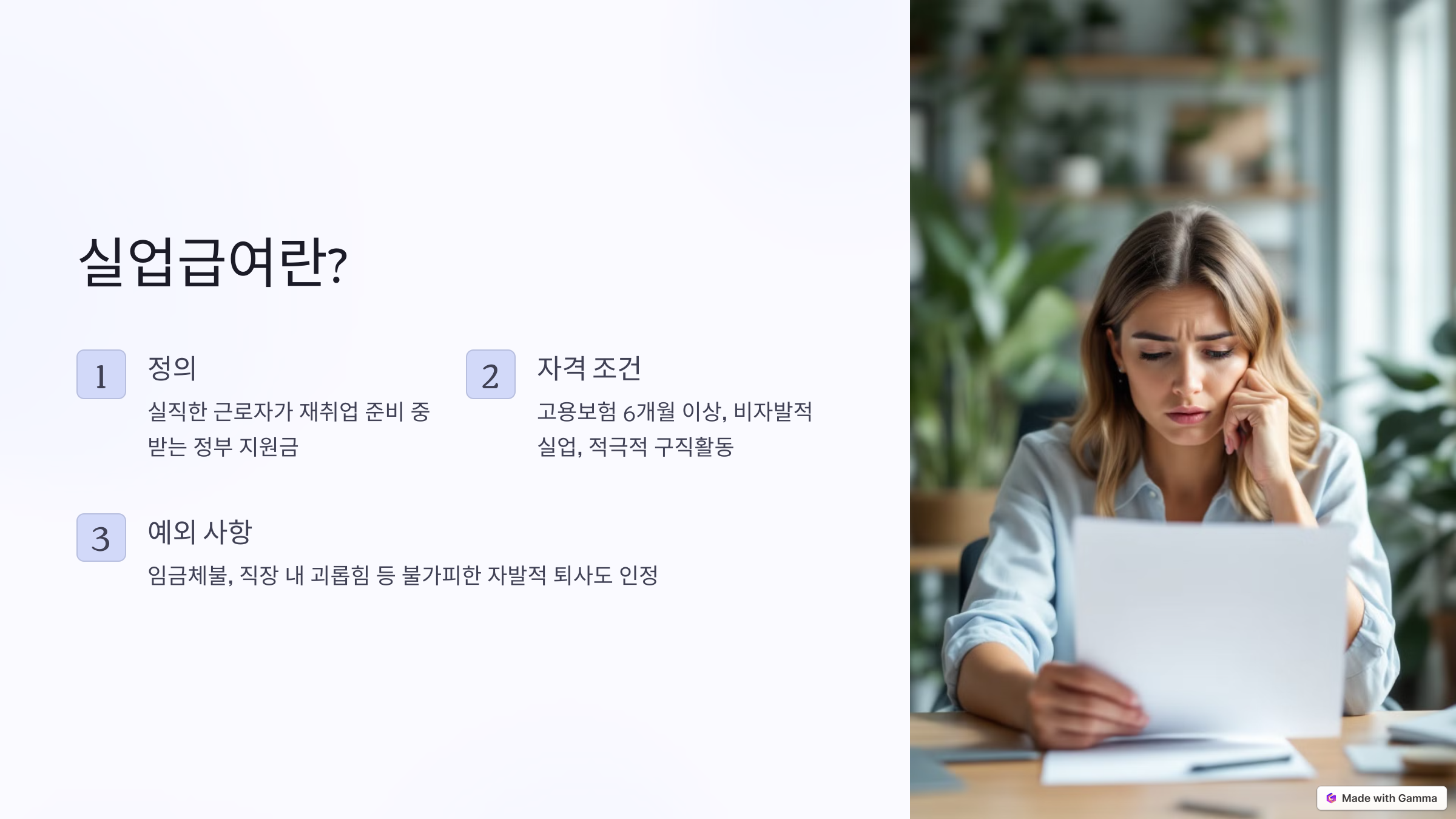 실업급여는 갑작스럽게 실직한 근로자가 재취업을 준비하는 동안 생활을 지원받을 수 있도록 정부에서 지급하는 지원금입니다. 하지만 아무나 받을 수 있는 건 아니고, 아래 조건을 충족해야 해요.