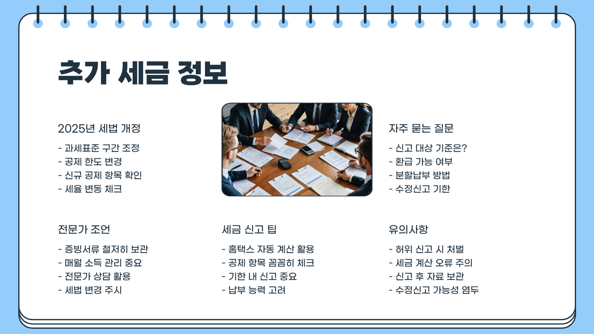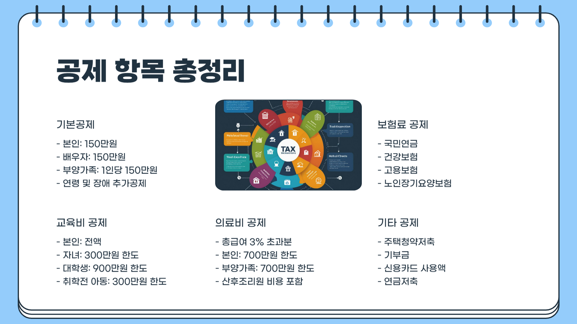 💡 공제항목 하나하나가 세금을 줄이는 열쇠이니 꼼꼼히 챙기세요!