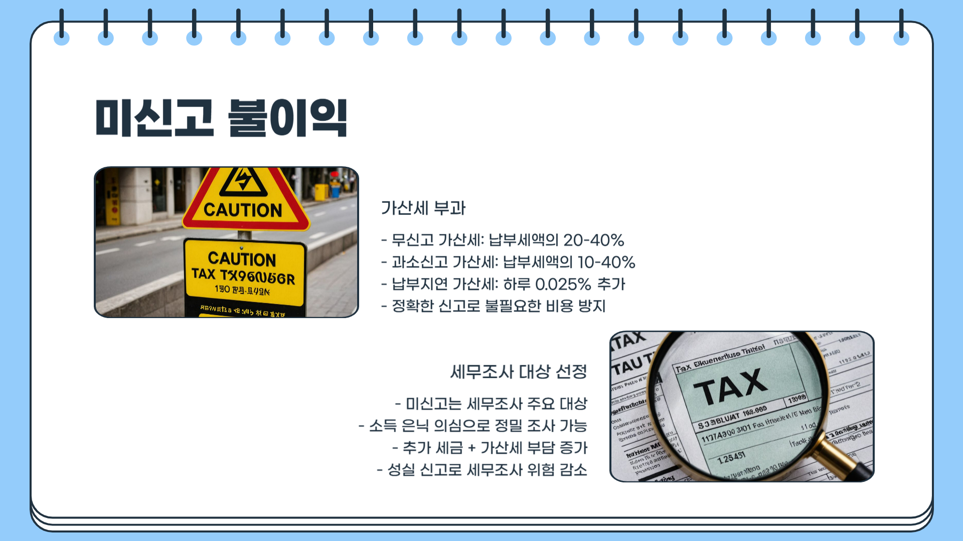 👉 가산세 + 세무조사 대상까지 될 수 있어요. 신고는 선택이 아니라 의무입니다.