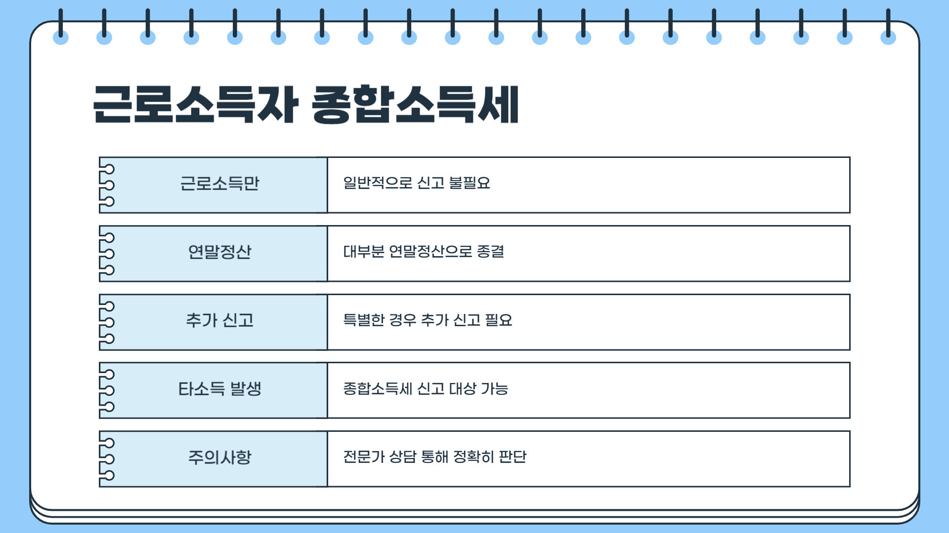 👉 아니요! 근로소득만 있고 회사에서 연말정산을 했다면 추가 신고는 필요 없어요.