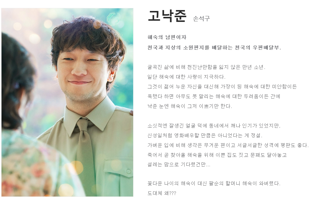 80세의 나이에 생을 마감한 이해숙(김혜자), 그녀는 죽음 이후 남편 고낙준(손석구)이 기다리는 천국으로 가게 됩니다.