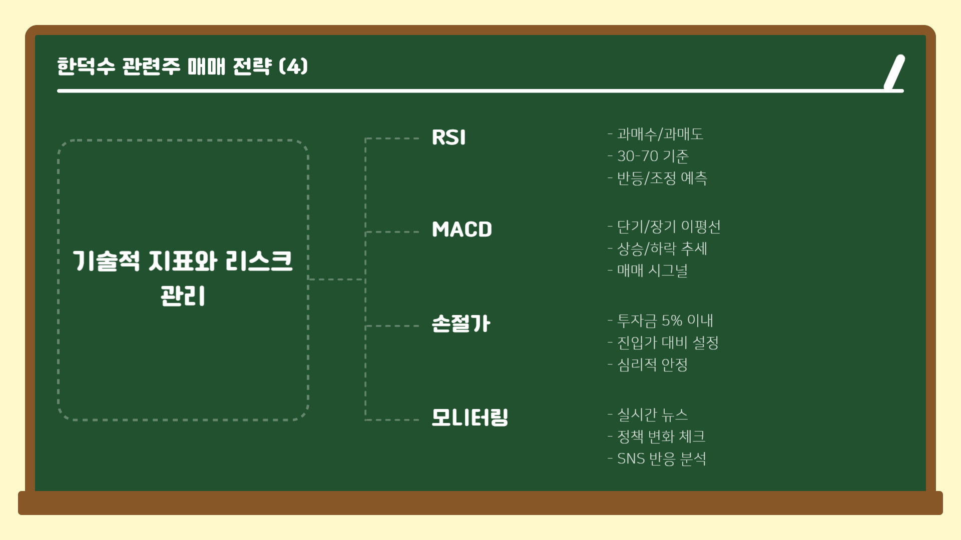 - RSI, MACD 등 기술적 지표 활용 추천.