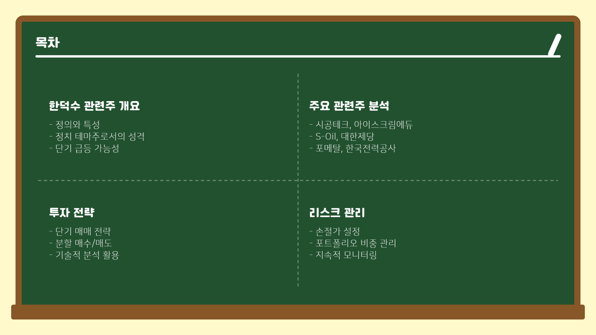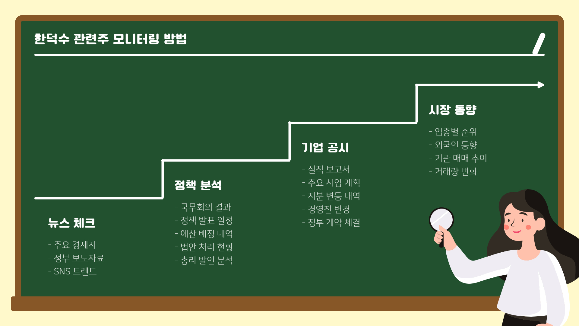 한덕수 관련주는 단기 이슈성 테마주로 활용하기 좋은 종목입니다. 하지만 급등 후 급락 가능성도 높은 만큼 무리한 장기 보유보다는 단기 매매 전략과 철저한 리스크 관리가 필수입니다.