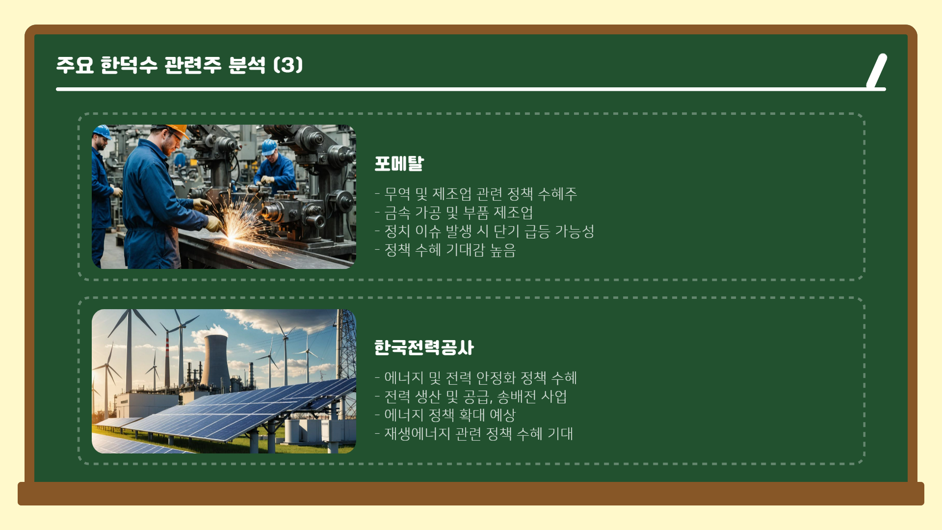 투자 포인트: 에너지 정책 확대 및 재생에너지 관련 정책 수혜 기대.