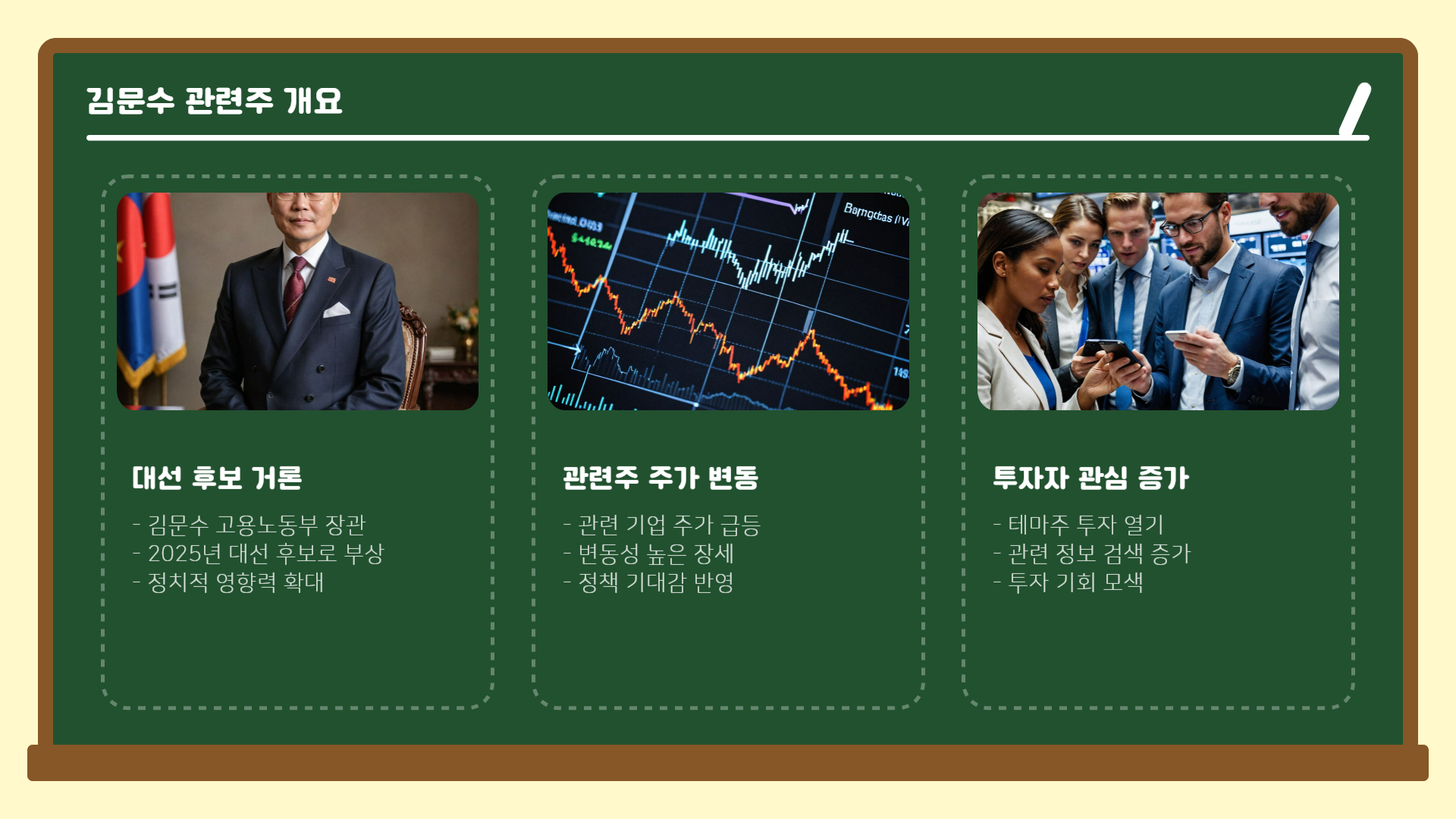 이번 글에서는 김문수 관련주 TOP3부터 추가 종목, 정치 테마주의 특징과 대응 전략까지 한 번에 정리해 드릴게요.