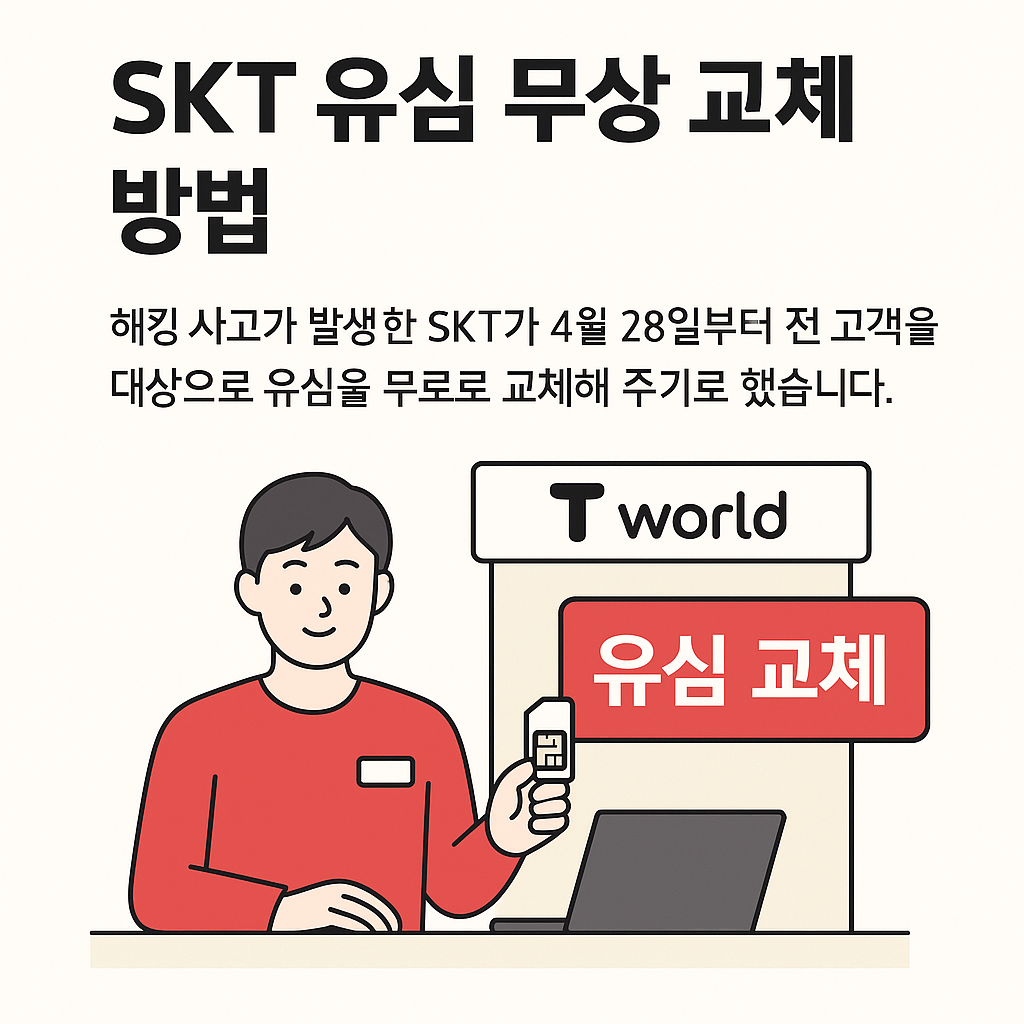 최근 발생한 SKT 해킹 사고로 인해, SK텔레콤은 전 고객을 대상으로 유심(USIM) 무상 교체를 실시합니다.